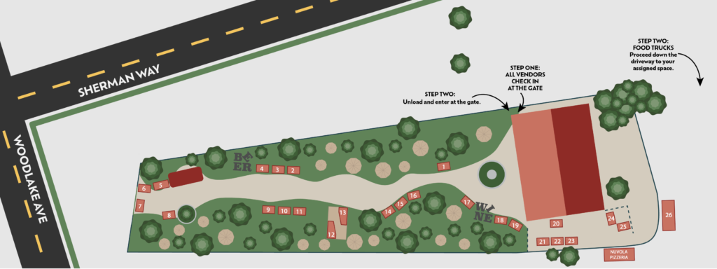 All vendors must check in with Devon from Malibu Wines and Beer Garden or her appointed representative before unloading.